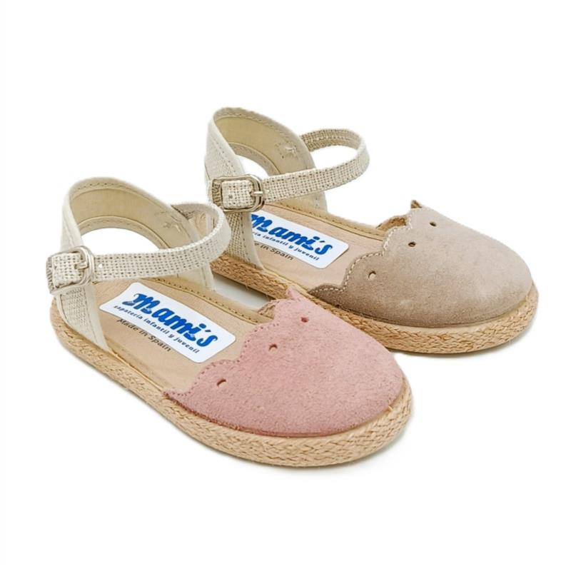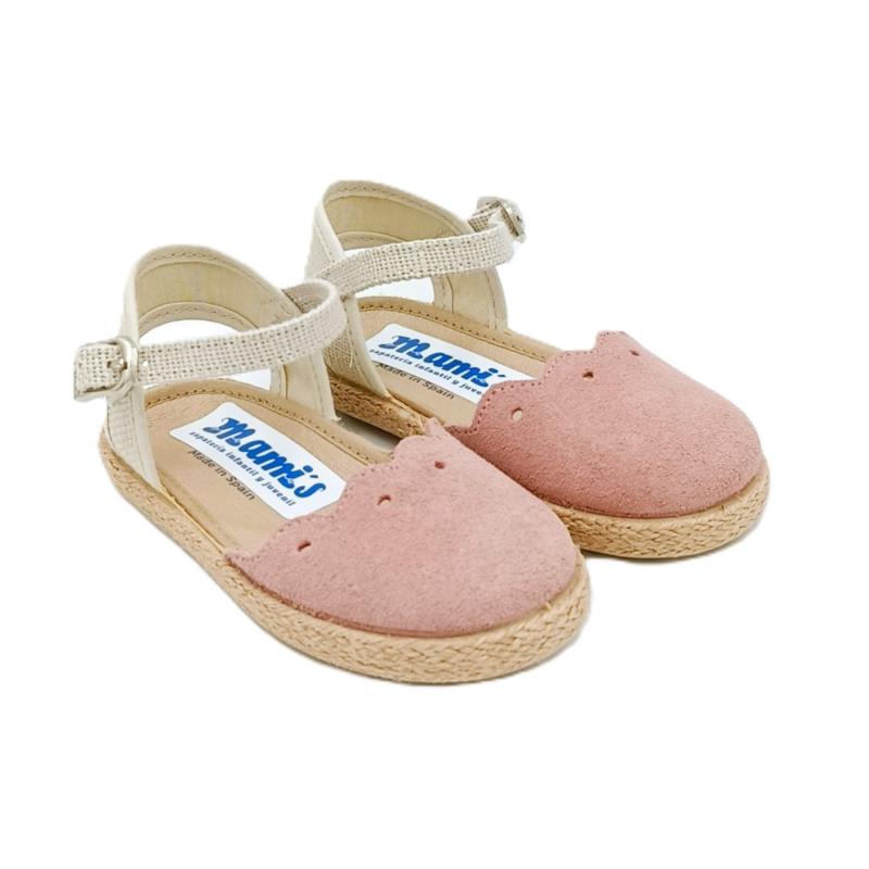 Alpargatas de ceremonia en piel serraje Rosa Maquillaje con hebilla para bebé y niña. MAMI'S