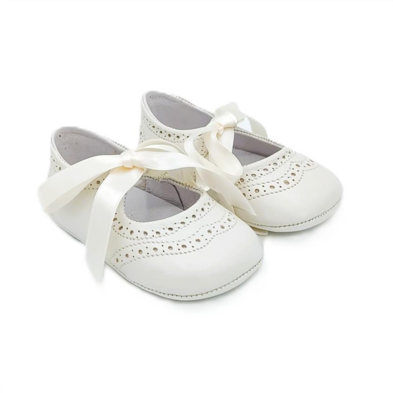 Mercedita de bautizo en piel nacarado Beige con cierre de lazo para bebé. MAMI'S