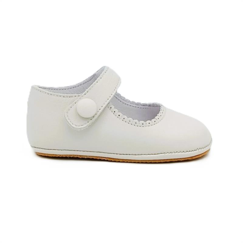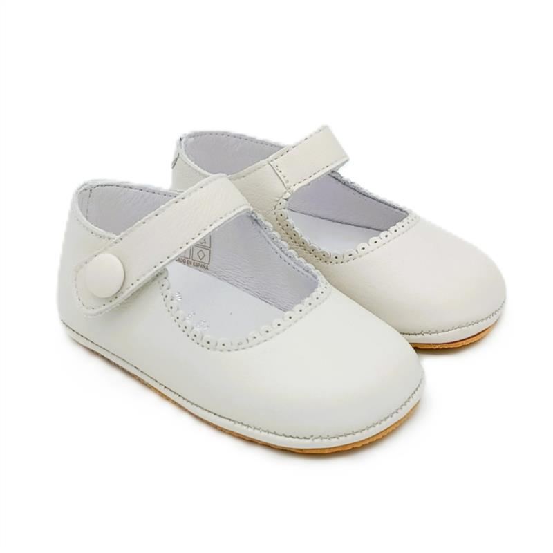 Merceditas de piel en Blanco Roto con cierre adherente y Semi-suela para bebé. MAMI'S