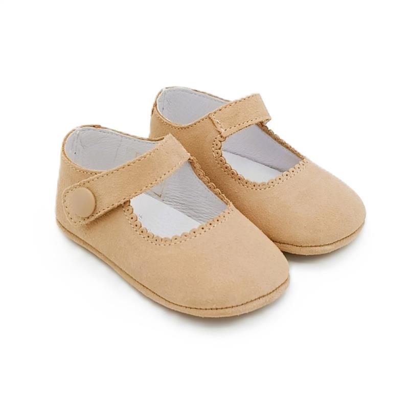 Merceditas de piel serraje en Camel con cierre adherente para bebé. MAMI'S