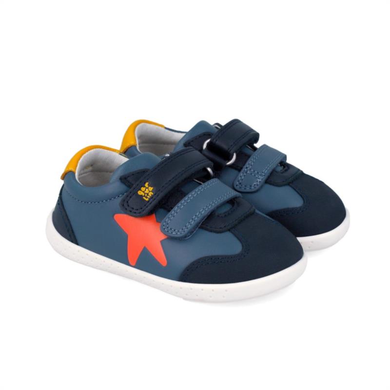 Deportivos Barefoot piel Jeans con estrella y cierre adherente para niño - Primeros pasos. GARVALIN