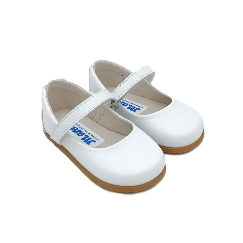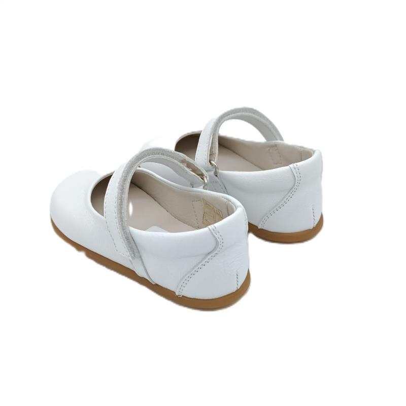 Mercedes Barefoot en piel Blanco con cierre adherente para niña - Drop cero. MAMI´S