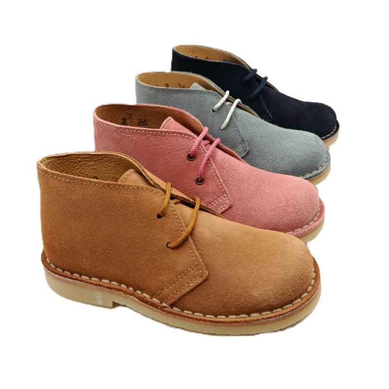 Botas safaris piel serraje Azul Marino cordones. MAMI´S