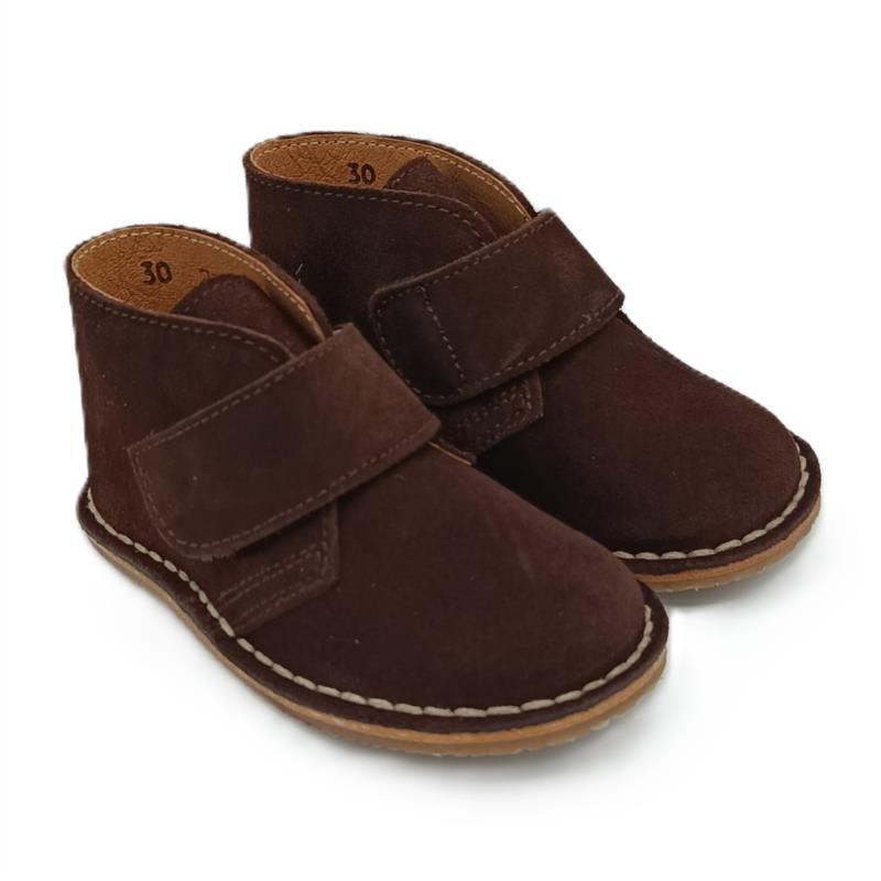 Botas safaris piel serraje Marrón cierre adherente, suela fino flexible. MAMI´S