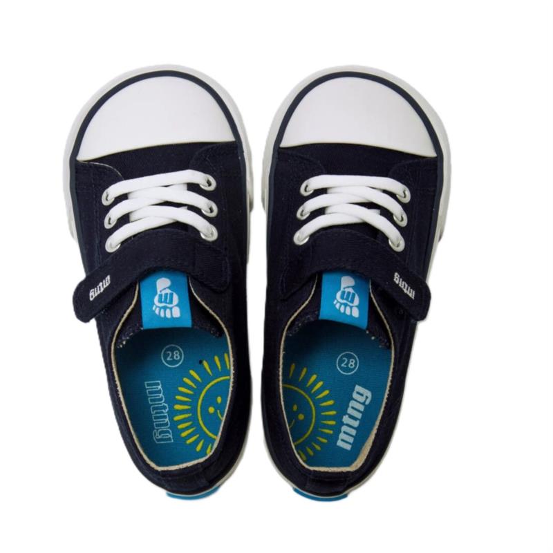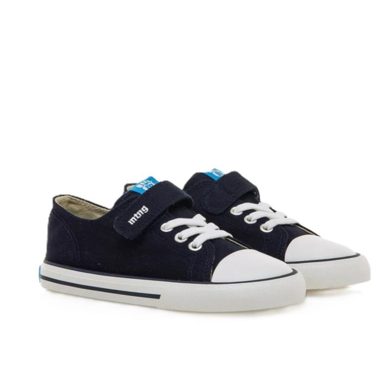 Deportivos barefoot de lona Azul Marino con cierre adherente y cordón elastico para niño y niña. MUSTANG
