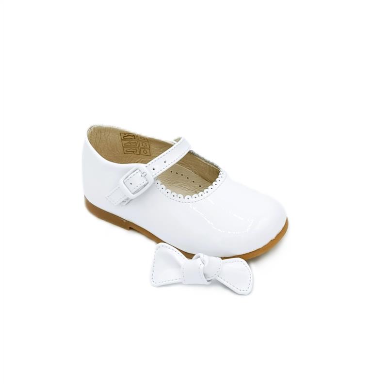 Merceditas piel charol Blanco con lazo extraíble y hebilla. MAMI'