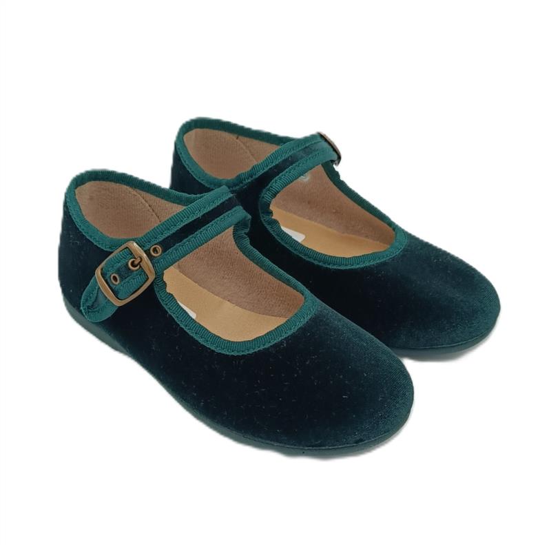 Merceditas terciopelo Verde Botella hebilla. MAMI´S