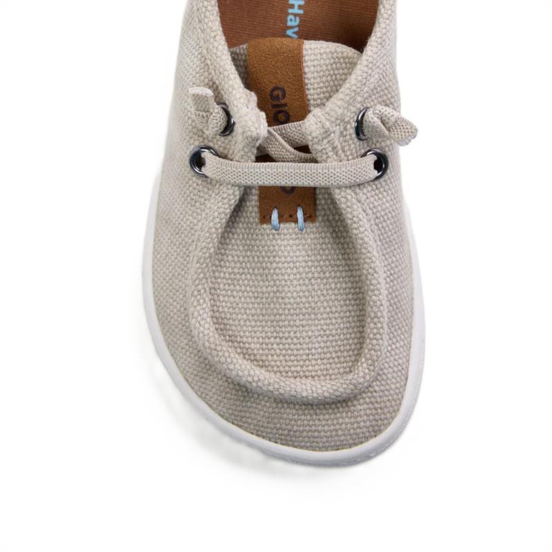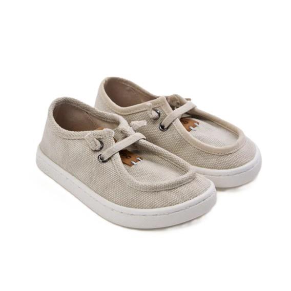 Mocasines Barefoot náuticos de lona en color Arena cierre cordón elastico ajustable. GIOSEPPO