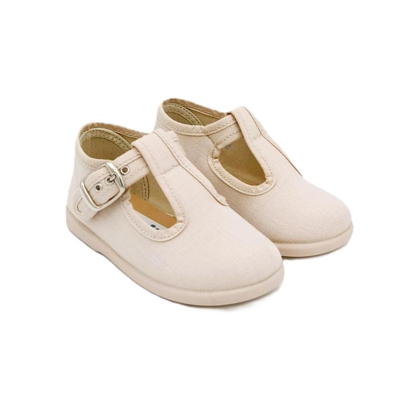 Pepitos de lino en Beige con hebilla para niño. MAMI'S