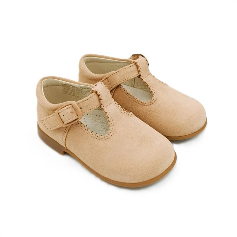 Pepitos piel serraje Camel cierre hebilla. MAMI'S