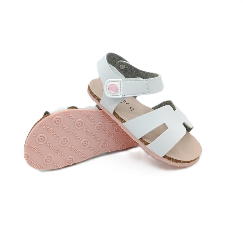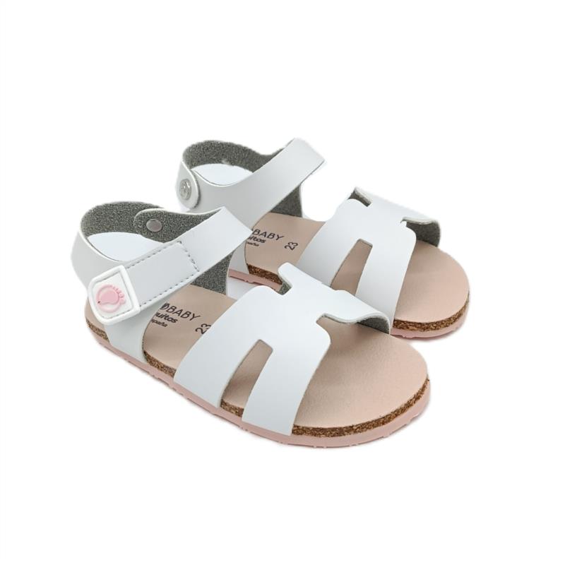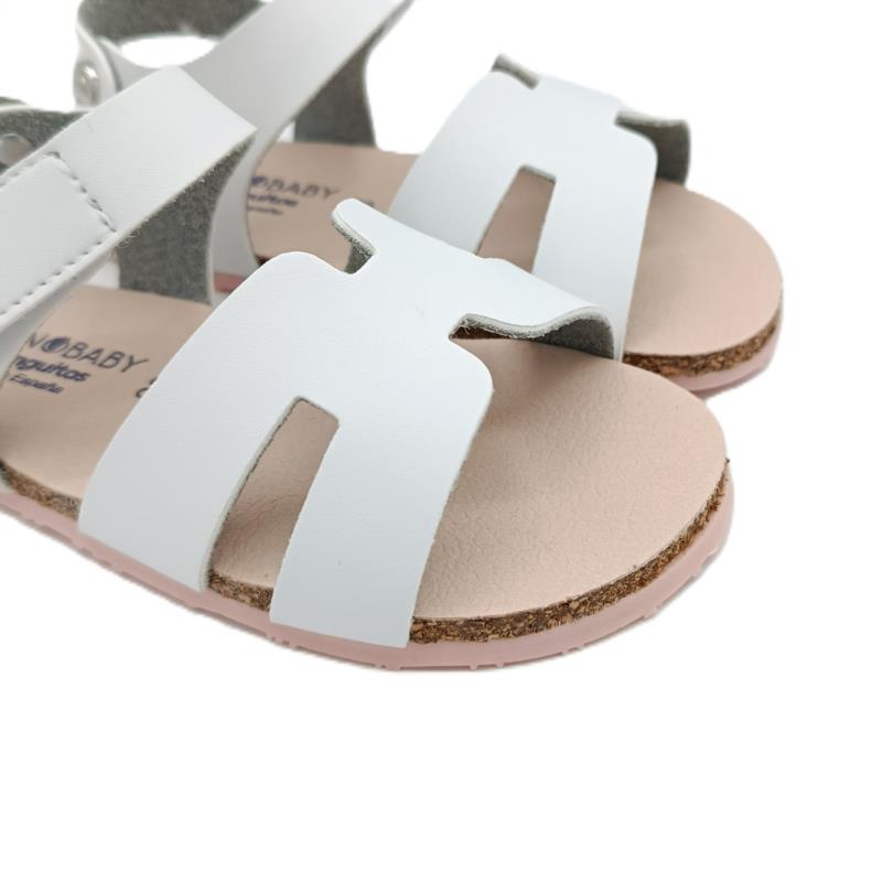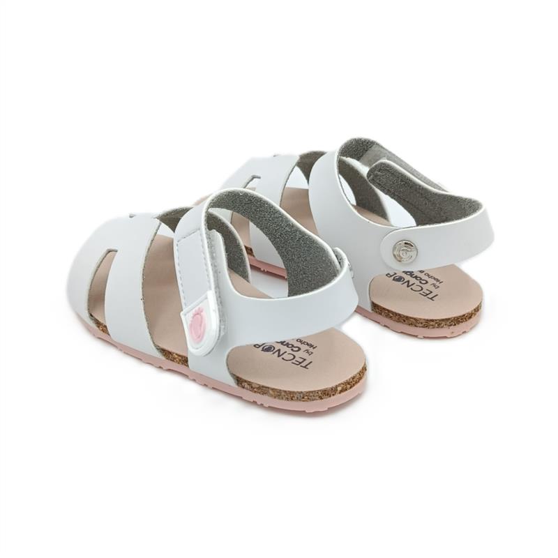 Sandalias barefoot en Blanco para niña con cierre adherente y suela bio. TECNOBABY