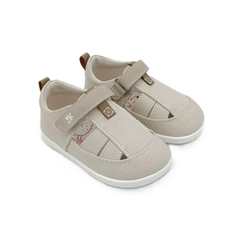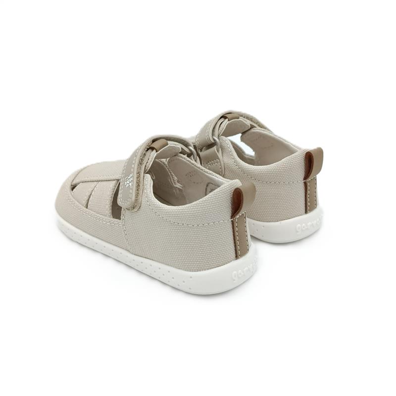 Sandalias Barefoot de lona en color Beige con cierre adherente para niño y niña. GARVALIN